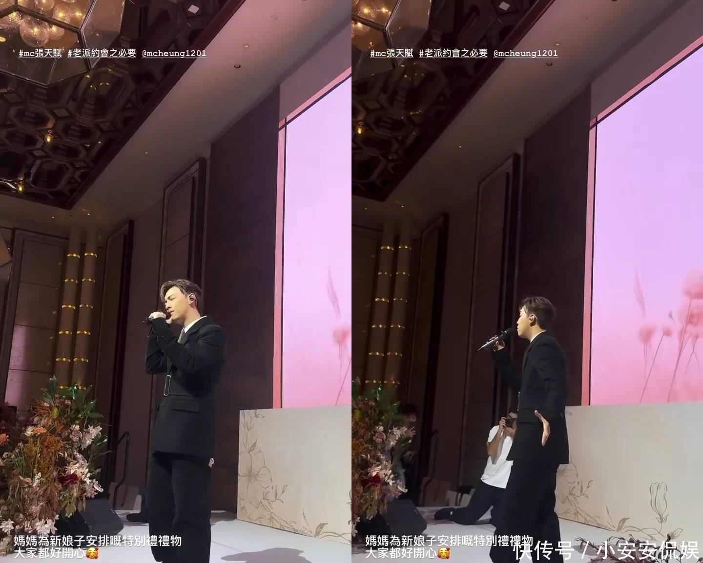 视频中,张天赋一身黑色西装,英姿飒爽,站在婚礼台上,用他那富有磁性的嗓音,演唱了《老派约会之必要》、《世一》等金曲,台下宾客掌声雷动,新娘Atalie更是陶醉其中,幸福溢于言表。这一幕,让不少网友直呼“这个婚礼没得输啦”,纷纷羡慕起这对新人的豪华阵容。